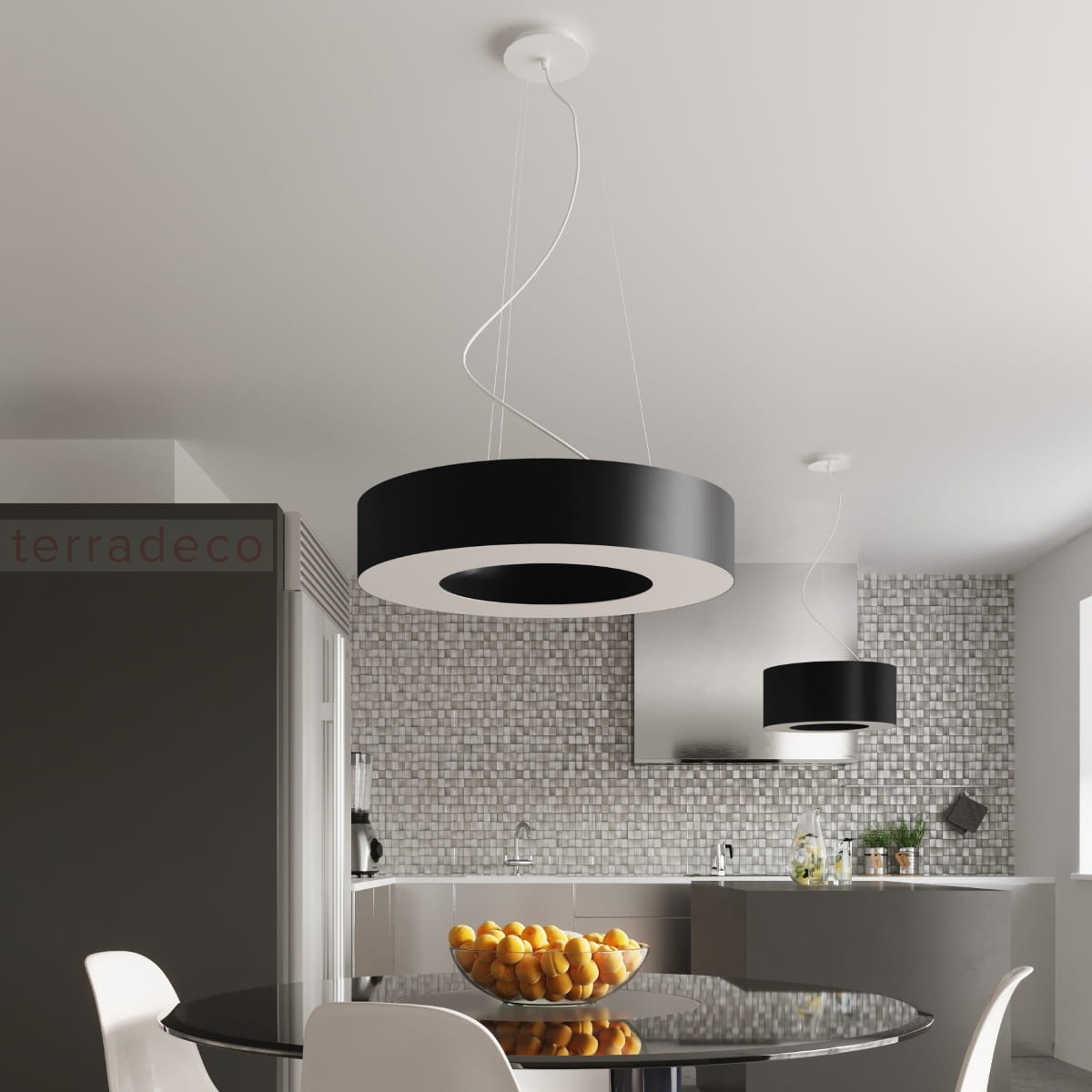 Umieść lampę na dowolnej wysokości w pomieszczeniu. W ten sposób możesz wydzielić przestrzeń roboczą w kuchni czy strefę relaksu w salonie. Wykorzystaj do tego regulowane zawiesie i dopasuj oświetlenie idealnie do swoich potrzeb.