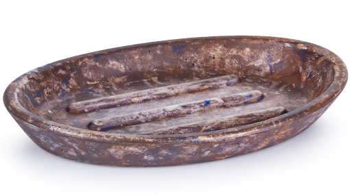 - W serii ORION betonowa mydelniczka BASIC ma gładki owalny kształt. Wypustki na spodzie mydelniczki, zapobiegają rozmoczeniu kostki mydła. Ręcznie wykonany dekor FINGER PAINTING powstaje spontanicznie poprzez malowanie palcami.