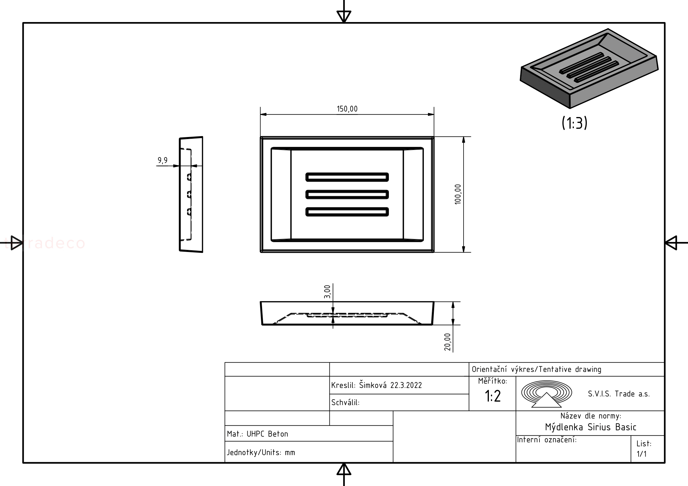 - Rozmiar S/G/W mm: 150/100/20