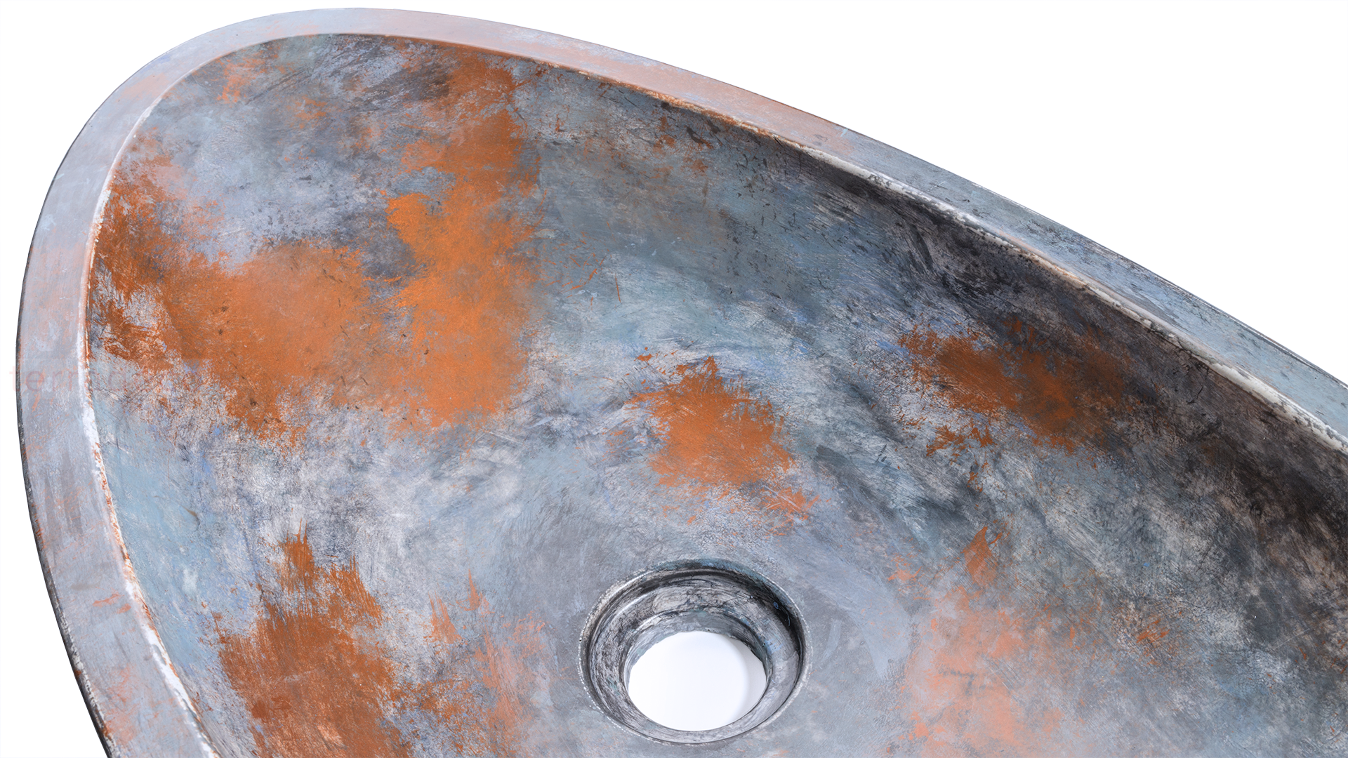 - W wersji podstawowej umywalka betonowa ORION ma prosty, gładki kształt. Z zewnątrz widoczna klasyczna struktura betonu z dziurkami i pęknięciami. Umywalka wykonana jest z niemalowanego betonu. Ręcznie wykonany dekor ALCHEMY to barwy zainspirowane reakcjami chemicznymi metali.