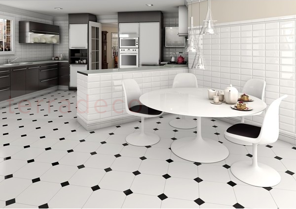 Oktagon czyli ośmiobok to coraz częściej spotykany kształt płytek ceramicznych pośród tych wyjątkowych i nietypowych. Octagono Alaska wraz Taco Negro od Vivesa to obecnie jeden z najczęściej spotykanych oktagonów w naszych wnętrzach. W celu poprawnego zamontowania białych płytek z serii Octagono Alaska, należy zastosować czarne kostki Taco które stanowią swoisty łącznik pomiędzy narożnikami tych płytek i są w tym przypadku elementem niezbędnym.