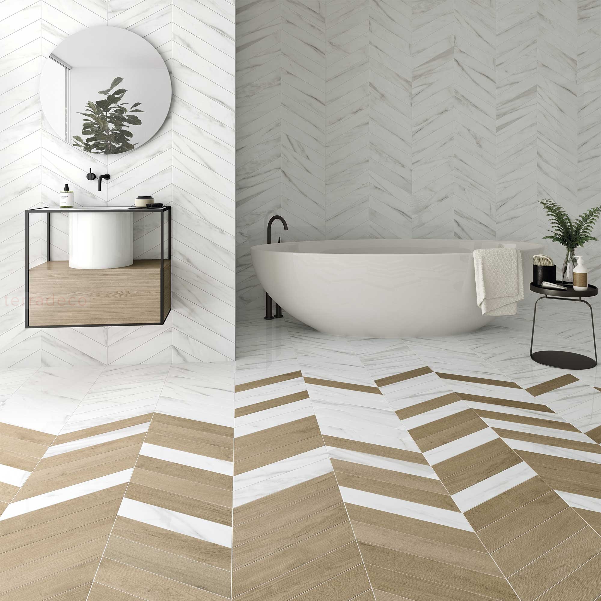 Odkryj ponadczasową elegancję z płytką WOW Chevron B Calacatta 9,8x52,2
