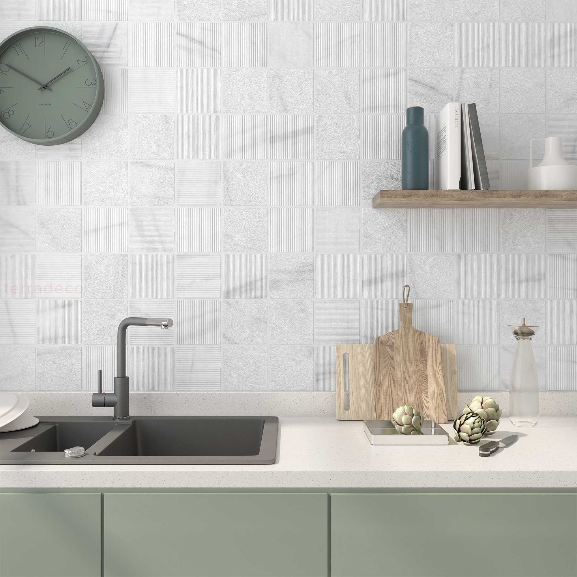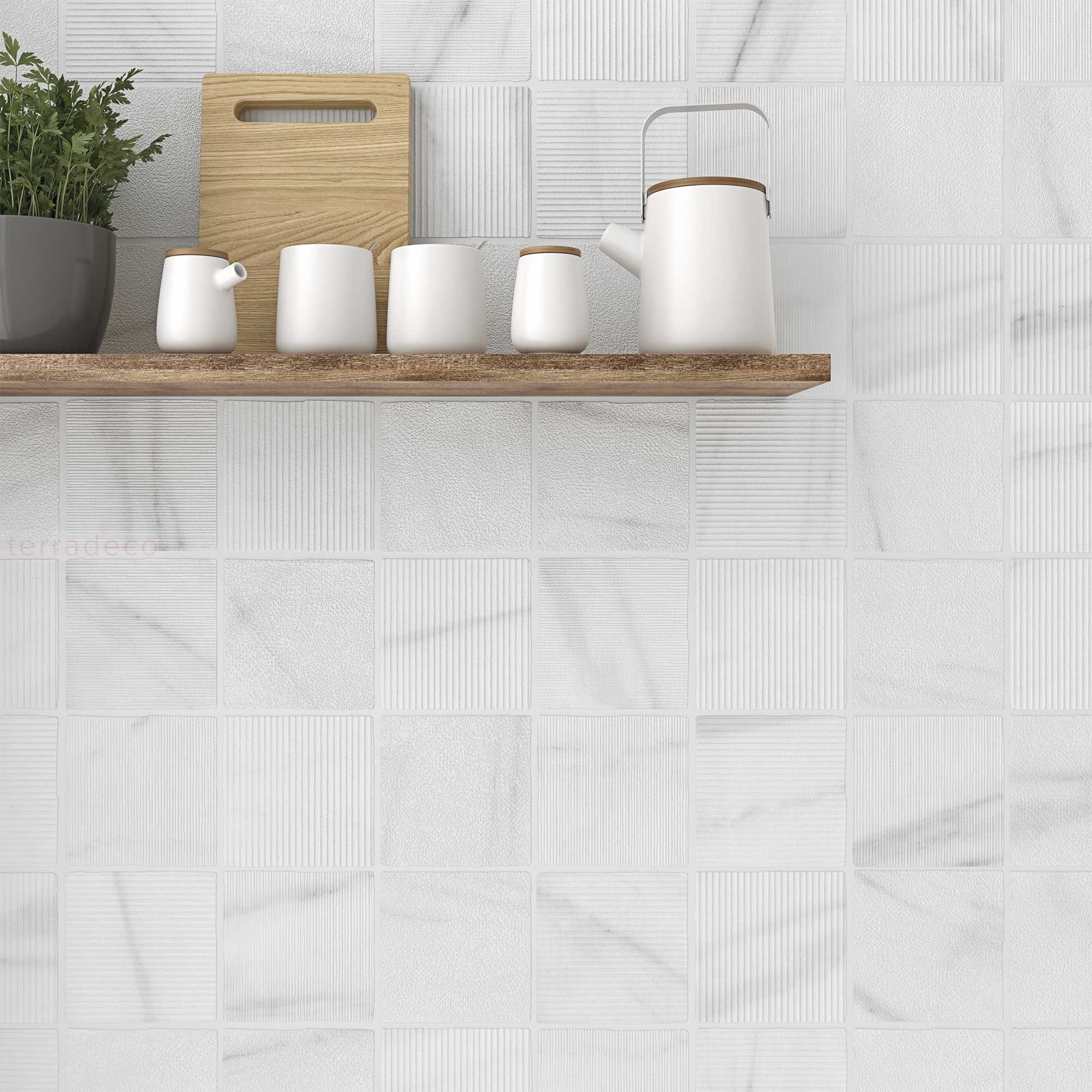 Luksusowa struktura rzeźbionego marmuru z WOW Gea Carved Calacatta 12x12