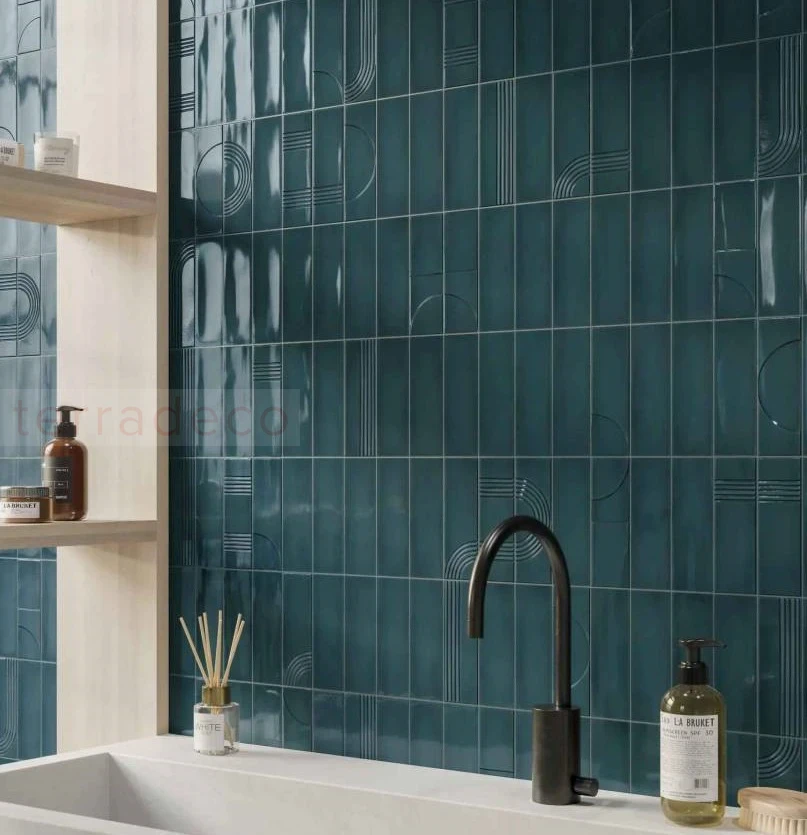 Płytka WOW Glow Decor Midnight Blue 5,2x16 to synonim nowoczesnej elegancji i hiszpańskiego kunsztu ceramicznego. Ten model w wersji Decor wyróżnia się nie tylko głębokim, nasyconym odcieniem granatu, ale przede wszystkim unikalną, strukturalną powierzchnią. Dzięki subtelnym reliefom światło efektownie załamuje się na krawędziach błyszczącego szkliwa, tworząc na ścianie hipnotyzujący spektakl refleksów i cieni. To idealny wybór dla inwestorów pragnących wprowadzić do łazienki czy kuchni nutę luksusu i biżuteryjnego wykończenia. Intensywna barwa Midnight Blue doskonale współgra z mosiężną armaturą, naturalnym drewnem oraz jasnym kamieniem, stając się wyrazistym, a zarazem niezwykle szlachetnym akcentem każdej nowoczesnej aranżacji.