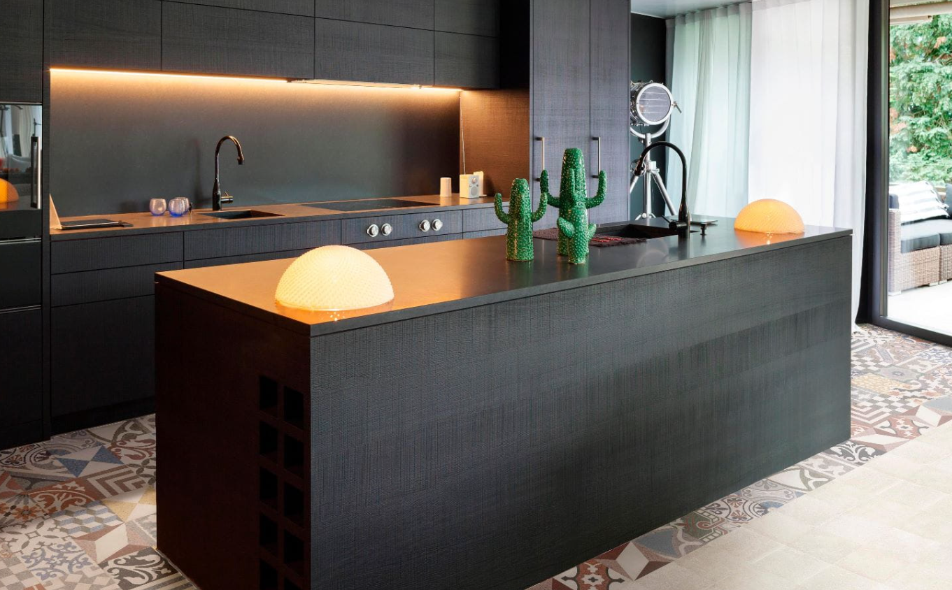 Tymczasem bardziej wyraziste propozycje są dobrym motywem dekoracyjnym. W kuchni świetnie prezentują się nad blatem roboczym, a także jako obudowa wyspy.