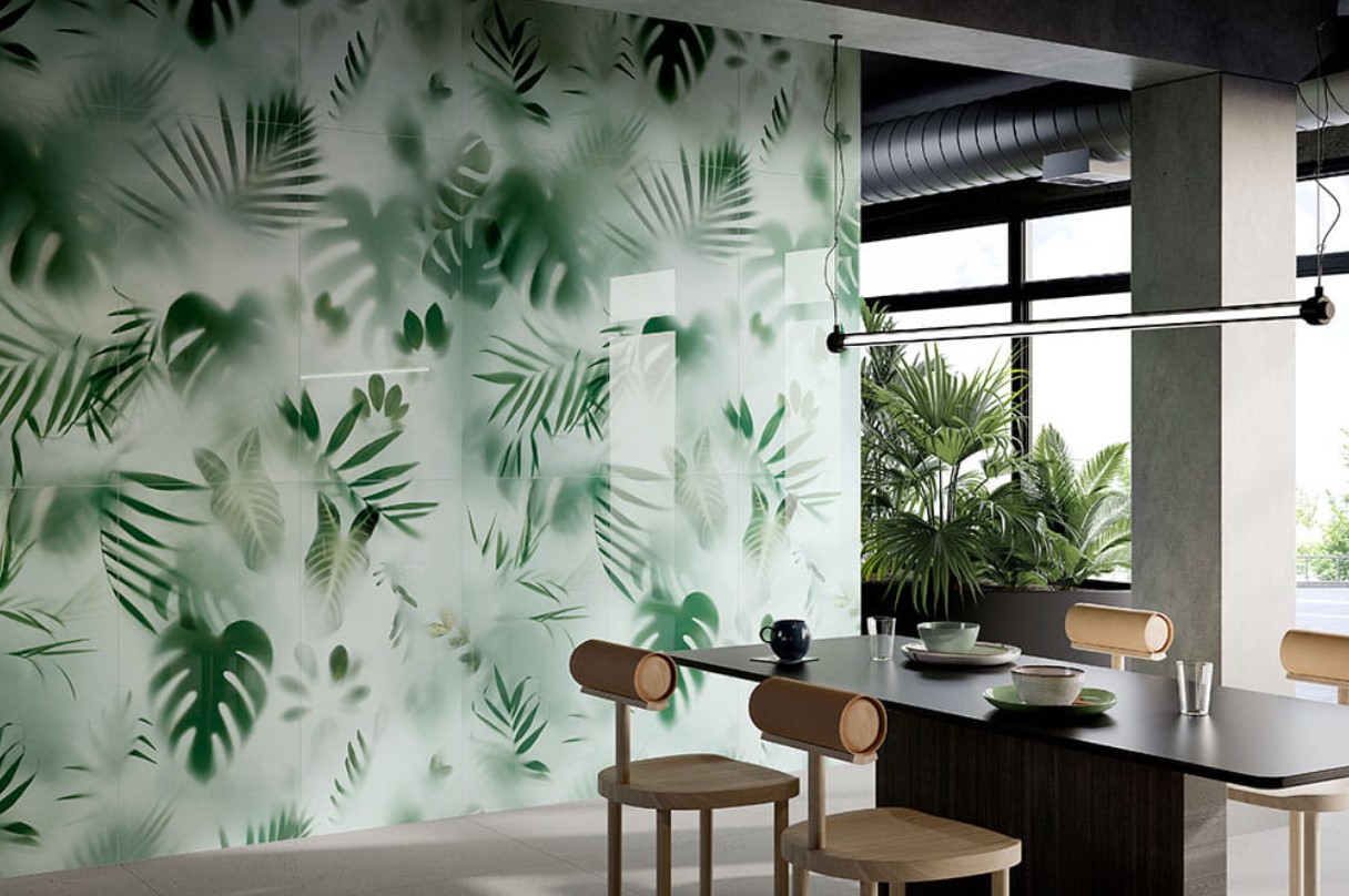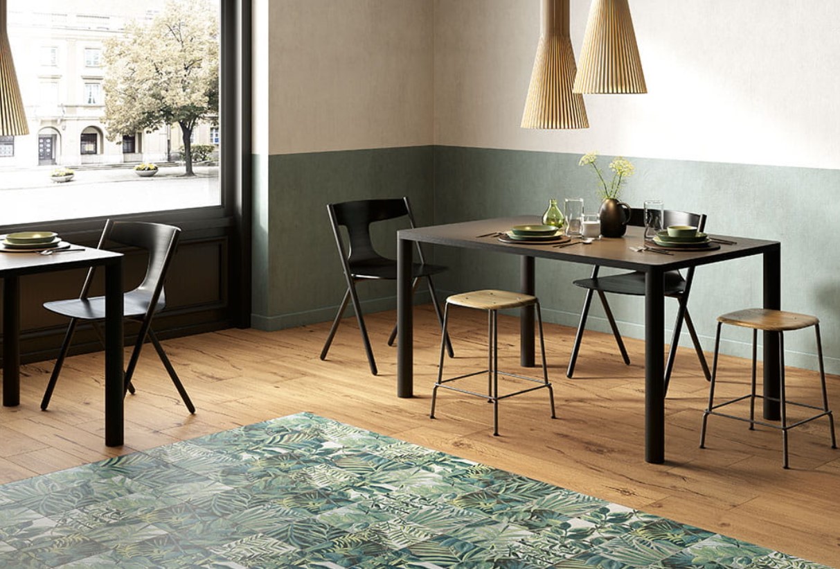 Płytki patchwork w biznesie pozwalają nie tylko podkreślić, ale wręcz stworzyć charakter obiektu. Wystarczy tylko odpowiednio dobrać wzór. Florystyczne kafle, takie jak włoska Fioranese Fio.Rainforest 60x120 OXR62PR czy majstersztyk polskiej produkcji Paradyż Ceramika Dream Inserto Połysk 30x60 świetnie podkreślają naturalność przestrzeni. Są idealne do restauracji z kuchnią wegetariańską i wege. Doskonale też odnajdują się w obiektach biurowych, gdyż zieleń wycisza i pomaga w koncentracji.